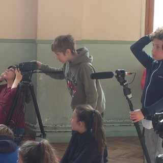 Avec le projet Volutes/habiter le poème, l'école Lucien Goron de Foix est devenue un plateau de tournage : l'attention se porte sur la prise de son, le cadrage, le choix de plans.